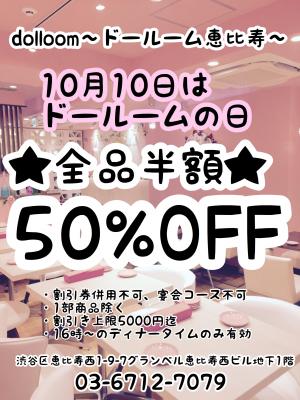 10月10日(火)はドールームの日【全品半額】に!