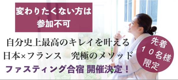 Fastastic College ファスタスティック・カレッジ(代表:1200時間ファスティング・フィニッシャー【50日断食経験者】藤原真寿美)は10月18日(水)~20日(金)に、肌の悩みを抱える方、本格的にデトックスしたい方を対象としたファスティング合宿「Fastastic Camp (ファスタスティック・キャンプ)2泊3日」を開催いたします。「ファスティングが身体にいいことは知っているけど、仕事しながらだと不安」「一人だと続けられるか心配」と言う方にも安心してご参加いただける空気も景色も美しい最高の環境で、安全かつ効果的な3日間ファスティング合宿です。