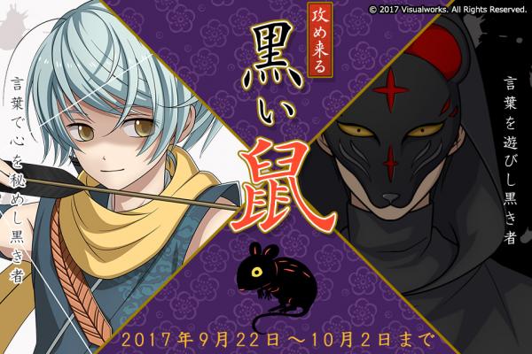 株式会社ビジュアルワークス(本社:東京都豊島区、代表取締役:落水恒一郎)は、スマートフォン版(Ameba、mixiゲーム、GREE)で好評配信中のカード式シナリオゲーム『結ひの忍』(ゆいのしのび)にて2017年9月22日(金)より、新イベント「攻め来る黒い鼠」の配信を開始いたします。