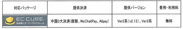 これによりEC-CUBEを使用のECショップのほぼ全てに対して、中国三大決済サービスの導入が可能となります。