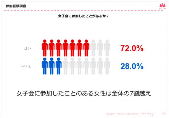 ・女子会に参加したことがある女性は72%