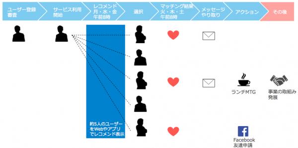 ●定期的に自分の希望に合う経営者がレコメンドされ簡単にマッチングが成立します