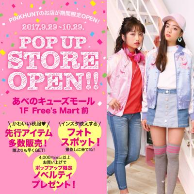 キッズ服ブランドBABYDOLL(ベビードール)の株式会社コージィコーポレーションが運営するジュニアガールズブランドPINKHUNT(ピンクハント)が、9月29日(金)より期間限定で『PINKHUNT★ポップアップストア』を あべのキューズモール1F Free’s Mart 前にオープンします。