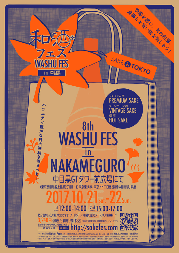 『第8回 和酒フェス in 中目黒』が10月21日(土)22日(日)開催!深まる秋に、冷やおろし、燗酒を楽しもう! ~和酒フェス史上最多50蔵以上、150種類以上の日本酒が集合!さらに15分拡大!~ (2017年8月1日配信)