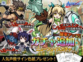 本日9月27日(水)から期間限定で人気声優陣が演じる新キャラクターの召喚確率がアップする「ニューフェイス」ガチャを開催いたします。本イベントでは今回追加された新キャラクター「孫悟空」(CV:松岡禎丞)、「エレイン」(CV:高橋李依)、「シャオ」(CV:藤田茜)の召喚確率がアップします。この機会をお見逃しなく!