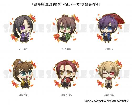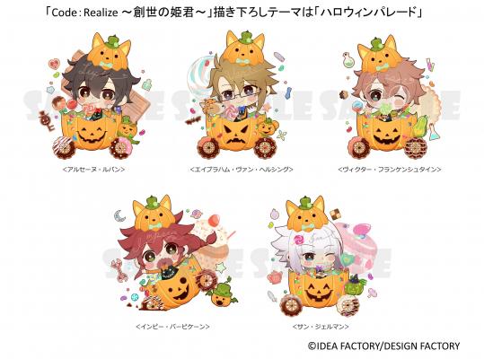 「四季で楽しむオトメイト」をテーマに2016年冬から始まったイベントショップも、この秋が最後の展開です。秋のリニューアルでは、紅葉をみて一句ひらめいた土方歳三など、紅葉狩りを楽しむ“薄桜鬼 真改”のメンバーや、ジャック・オー・ランタンの馬車に乗ったルパンなどハロウィンパレードがテーマの“Code:Realize ~創世の姫君~”メンバーが描き下ろしとして登場します。