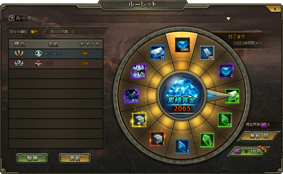 ルーレットを回すと、確率で目玉報酬となる「ダイヤ賞」「橙色戦闘員パーツ宝箱」を獲得できます!