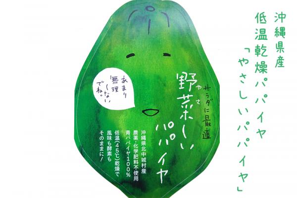 体にいいことづくしの青パパイヤをいつでも手軽に摂り入れたい!という想いから、「やさしいパパイヤ」が誕生しました。酵素や風味を損なわないよう、減圧しながらじっくりと低温乾燥。水で戻したときには生のパパイヤに近い風味で、美味しくお召し上がりいただけます。