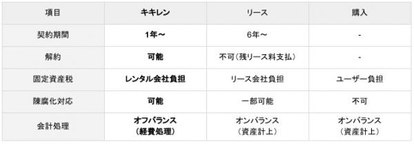 厨房機器導入にともなうレンタル / リース / 購入の比較表