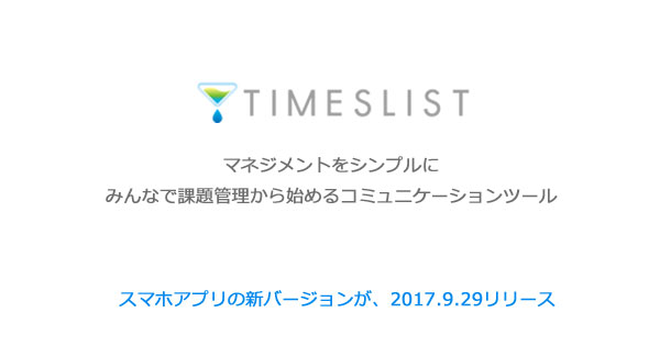 「課題管理でマネジメントをシンプルに ”はたらく”を変えていく、”できること”が増えていく」環境作りのため、体系的なマネジメントの考え方・現場と並走する実践の支援・使いやすいツールの3つを組み合わせて提供する株式会社マネジメント(本社:東京都港区、代表:音羽真東)は、 使いながら生産性を確実に上げられる課題管理ツール「TIMESLIST(タイムズリスト)」に、スマホアプリの新バージョン”を2017年9月29日より提供開始しました。