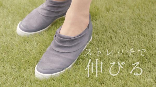 幅広設計に加えて、ストレッチの効いたアッパーで脱ぎ履きも楽々。生活防水や