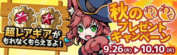◆10月10日(火)まで!超レアギアがもれなくもらえる!秋のわくわくプレゼントキャンペーン開催中!