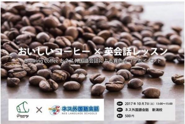 イベントでは、「新潟から世界へ」をテーマに、新潟のコーヒーカルチャーを盛り上げる「Growing Coffee」が、コーヒーの基礎知識やトレンドを講義し、実際においしいコーヒーを飲みながら、ネス外国語会話の講師がコーヒーに関する英会話レッスンや、オススメのコーヒー産地への旅行・留学などもご紹介します。