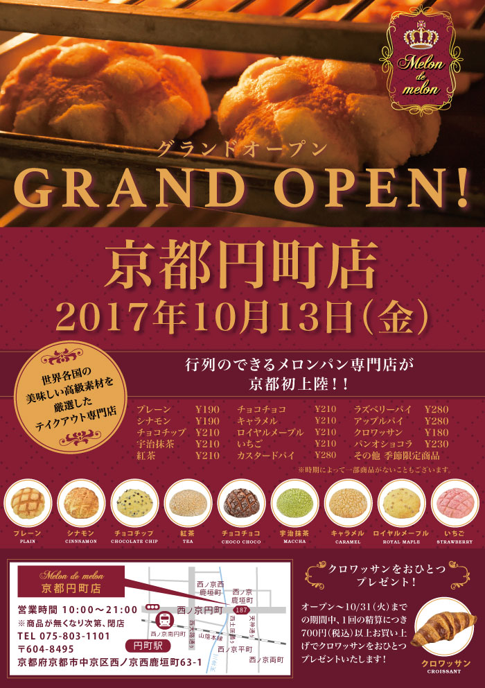 京都市円町に京都初上陸!いつでも焼き立てのメロンパンを提供いたします。