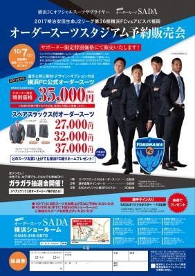 工場直販オーダースーツSADAは10/07(土)にニッパツ三ツ沢球技場にて「オーダースーツ販売会」を開催致します。スタジアム販売会に際しまして、2017年モデルの横浜FC公式オーダースーツを発売致します。オーダースーツSADAは、スーツサプライヤーとして2017年シーズンも横浜FCを応援致します。