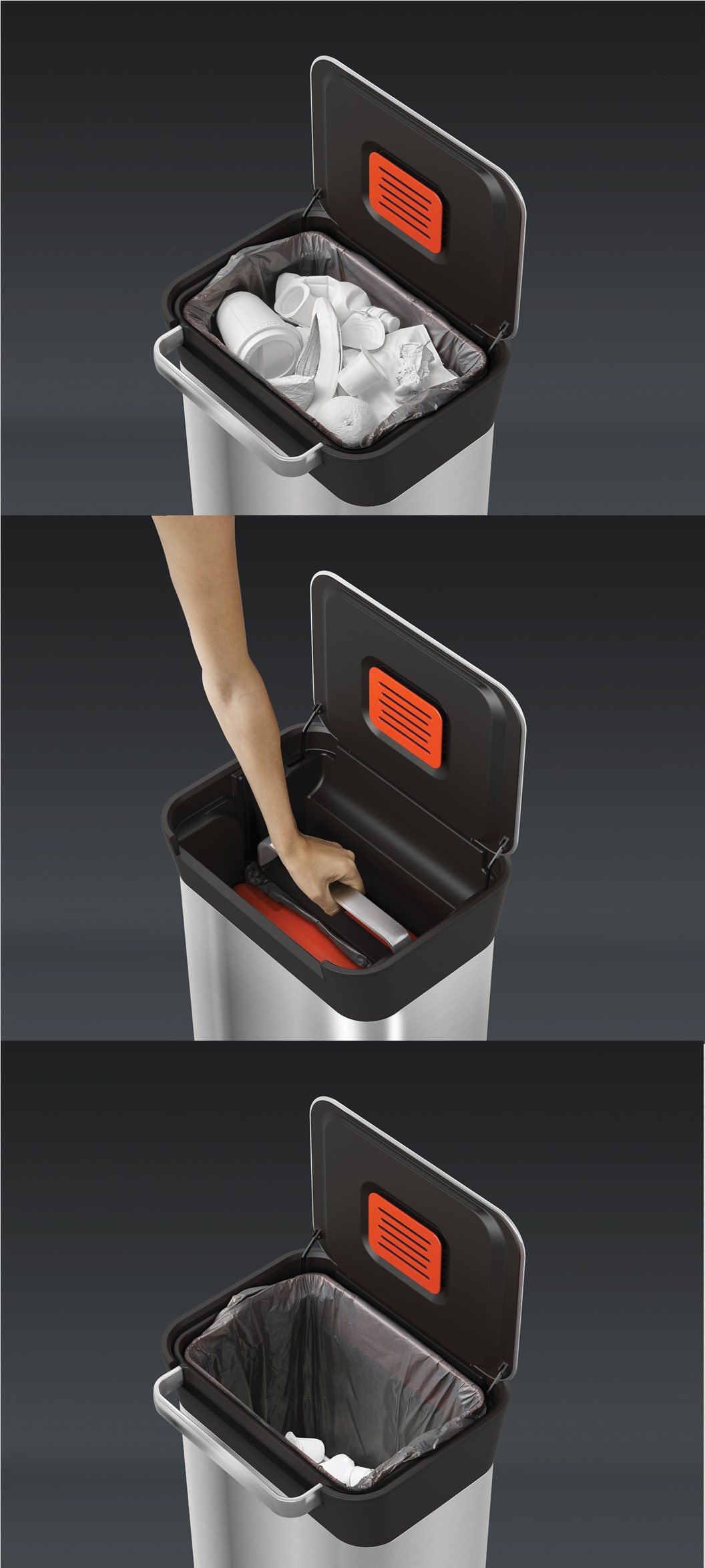 ユニークかつ高い機能性を保ちつつ、Joseph Josephらしいデザインを追求した新世代フォルムは、ステンレスの素材感と融合することでごみ箱とは思えないスタイリッシュで高級感が漂うおしゃれな製品になりました。