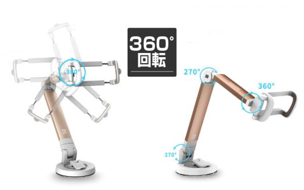 自由に回転する接続ジョイントなので、360度回転できます。