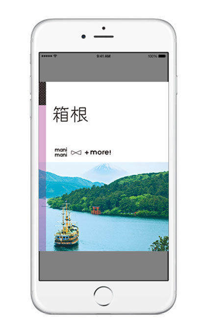 『manimani +more!』は、パーソナルメディアやSNSに馴染んだ20~30代女性をターゲットに、iPhone、iPadでの閲覧に最適化した電子書籍ガイドブックシリーズです。美しい写真と上質なデザインで読者が自分自身の“好き”を見つけられるコンセプトはそのままに、ディスプレイ上で写真を大きく表示できるようレイアウトを再構成。地図リンク・SNSリンクなど、電子書籍ならではの機能を盛り込みました。さらに、動画や360度ビューコンテンツ、掲載スポットを写真から探すページなど、書籍ガイドブックにはない楽しみ方を提案しています。