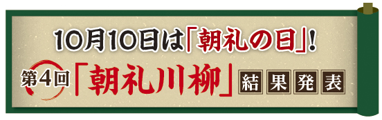 「朝礼川柳」は、10月10日が「朝礼の日」と認定されたことを記念し、企業で毎日行われる朝礼に関する思いを、 五・七・五のリズムで表現していただく企画です。好評につき4年目を迎えました。 今回の応募総数は4,192句でした。この中から大賞1作品、優秀賞1作品、奨励賞10作品を選出しました。 受賞者には、それぞれ賞金と『月刊朝礼2017年12月号 』(結果発表)をお贈りします。