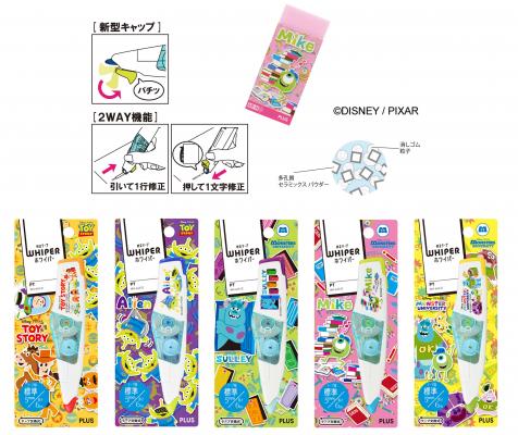 プラス株式会社(本社:東京都港区 代表取締役社長:今泉公二)は、ペン型修正テープ「ホワイパーPT」と 消しゴム「エアイン」から、ディズニー・ピクサー作品に登場するキャラクターたちをポップなテイストで描いた「ディズニーコレクション<数量限定>第8弾」を2017年11月1日に発売します。