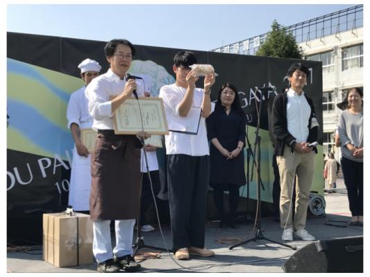 2017年のグランプリは、Boulangerie Convivialite(ブーランジェリー コンヴィヴィアリテ)の「3国3匹子猫のカレーパン」に決定。かわいらしい子猫が3匹並んだフォトジェニックなビジュアルと本格的な味わいのギャップを楽しめると高く評価され、表彰状とともに賞品としてバルミューダ株式会社より話題のトースター「BALMUDA The Toaster」が贈られました。シェフの伊藤清治氏は「通常より手間のかかるパンだが、たくさんのひとに喜んでもらうため試行錯誤し完成した。その甲斐あって、去年の入賞を経て今年グランプリを獲得。来年も連覇を目指したい。」と来年に向けた意気込みを語りました。