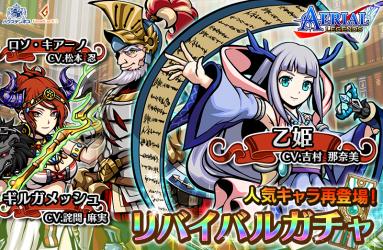 本日10月11日(水)から期間限定で特定キャラクターの召喚確率がアップする「リバイバルガチャ」を開催いたします。本イベントでは今回新たに追加された「乙姫★3」(CV:吉村那奈美)をはじめ、人気の「ギルガメッシュ★3」(CV:詫間麻実)や「ロソ・キアーノ★3」(CV:松本忍)の召喚確率がアップします。この機会をお見逃しなく!
