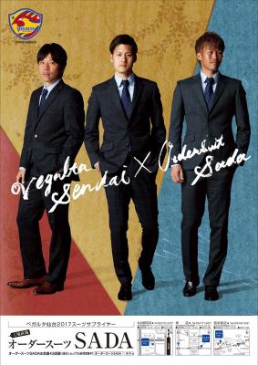 オーダースーツSADAは、以前よりベガルタ仙台にオフィシャルスーツ提供を行っておりましたが、これまでの実績を評価され、この度の2017年モデルの販売となりました。