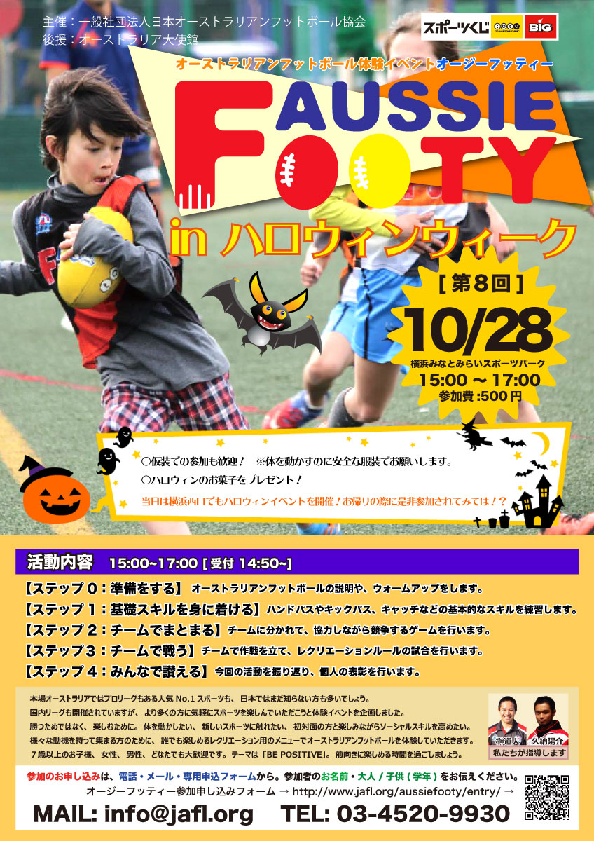 オーストラリアンフットボールの体験イベント「オージーフッティーinハロウィン」が10月28日(土)に行われます。