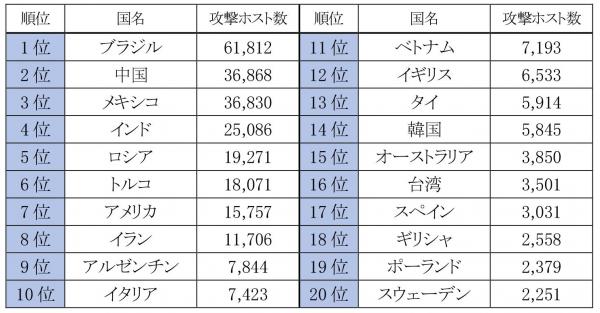 ※注:上記は単純な攻撃ホスト数のカウントであり正規化を行っていないため、人口やインターネット利用者数が多い国が上位に来ている点に注意が必要です。