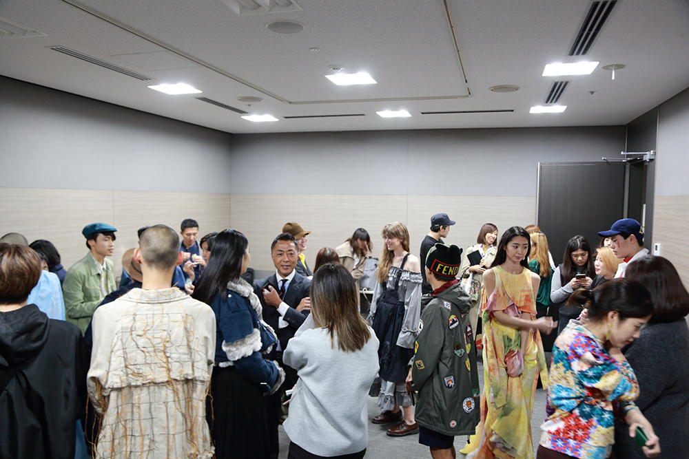 授賞式の後は、参加デザイナーと審査員、そして多くのバイヤーとメディア関係の方々にもご来場頂いての懇親会が行われ、参加デザイナーとの様々な意見交換や取材が行われました。