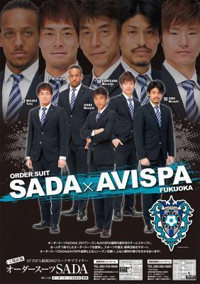 オーダースーツSADAは、以前よりアビスパ福岡にオフィシャルスーツ提供を行っておりましたが、これまでの実績を評価され、この度の2017年モデルの販売となりました。