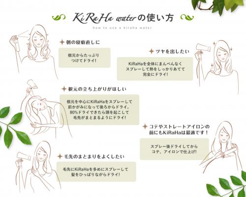 キラハウォーターは、現役美容師が実際のサロンワークの中で得た“気付き”から生まれました。贅沢に配合されたトリートメント成分がサロンクオリティの手触りやツヤを生み出し、毎日自宅で簡単に使用できてサロン帰りのような仕上がりを実感できるブローローションです。