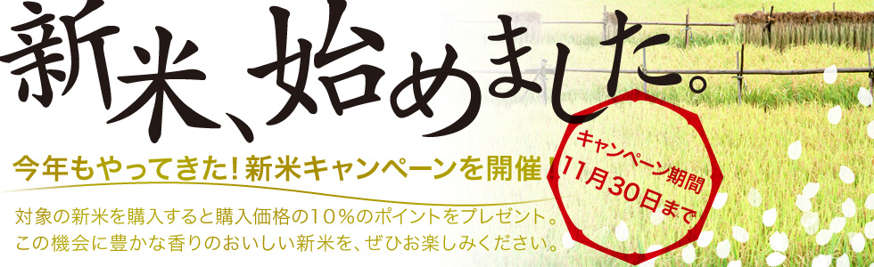 また、米こころでは新米販売開始に伴い、新米をご購入時に購入価格の10%をポイント還元(付与)する「新米キャンペーン」を実施中です。