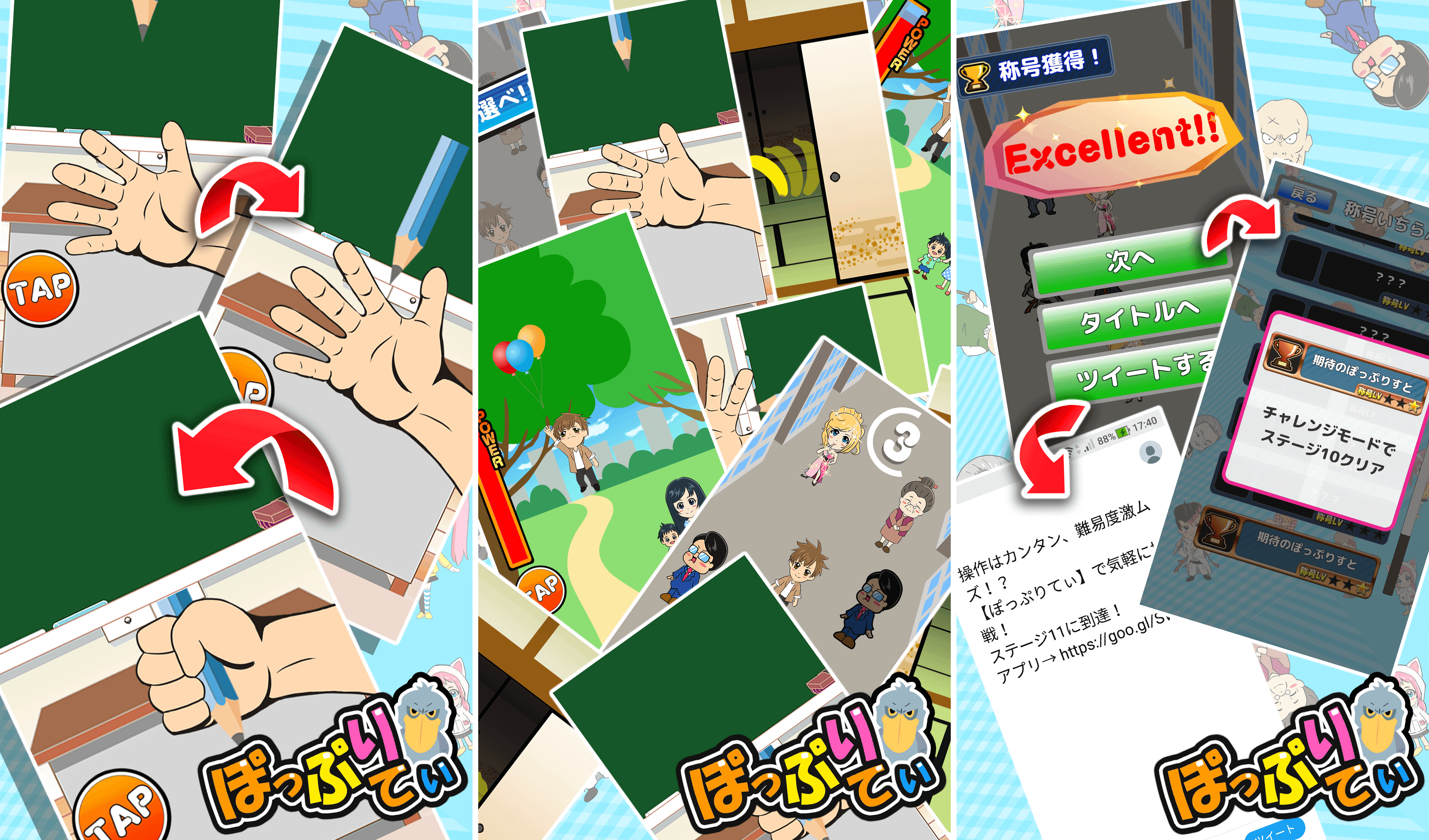 今回新たに「ペン掴みゲーム」と「称号」機能、「ツイート」機能を追加いたしました。
