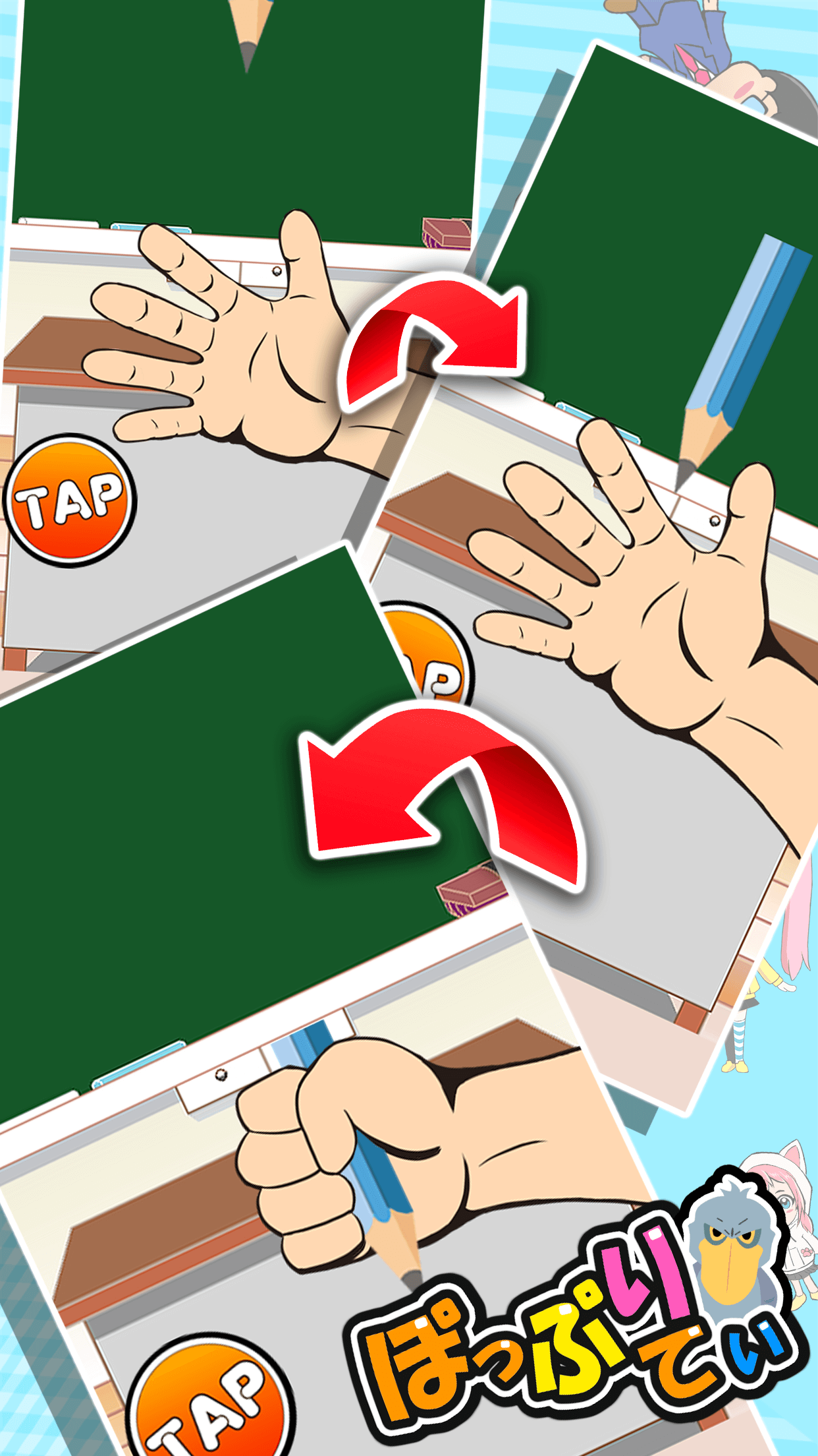 難易度によって、出現する人数が増えたり、制限時間が短くなるので、一瞬の判断力と素早い操作が試されます!