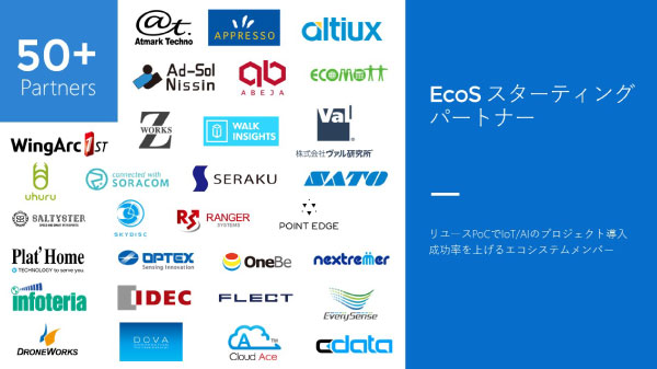 EcoS のメンバーになると、EcoS パートナーのロゴの利用、その他様々な特典があります。EcoSのメンバーになるには、IoT/AIに関するインテグレーション、ソリューション、ハードウェア等に対していくつかのスキルやノウハウ、人的リソースの条件を満たして頂く必要があります。