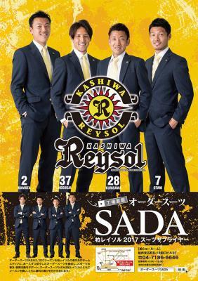 オーダースーツSADAは、以前より柏レイソルにオフィシャルスーツ提供を行っておりましたが、これまでの実績を評価され、この度の2017年モデルの販売となりました。