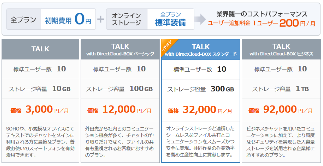 ■プラン名:TALK with DirectCloud-BOX スタンダード