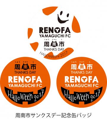 ・レノファ山口&しゅうニャン市のダブルサポーター認定缶バッジの配布(無料:先着1,000名)