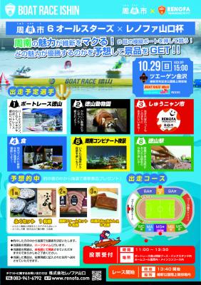 また、試合開始前には、とらふぐのお刺身セットなどが抽選で当たる、周南市の6つの魅力コンテンツのナンバーワンを決めるエキシビジョンレースを開催します。