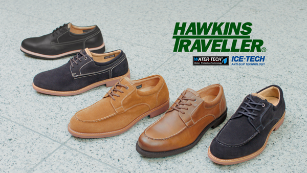 カジュアル化が進む男性のオフィススタイルの変化を受けて、オン/オフで使える新作がHAWKINS TRAVELLERから登場。ミッドソールにはランニングシューズにも使用される軽量かつクッション性に優れた素材を採用。2ピース構造の衝撃吸収性の高いインソールを搭載し、より足にフィットする優しい履き心地に進化した。アウトソールには雪や雨でも滑りにくいアイステックソールを装備し、防水素材のウォーターテックを内張りに採用した全天候型シューズ。