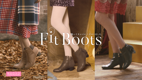 優れた屈曲性、やわらかインソールなどFIT パンプスの機能性を取り入れることで、優しい履き心地を実現したFIT ブーツ。今季はさらに、女性らしさを追及し「履いてキレイ」にこだわった“キレイ見えブーツ”へと進化。