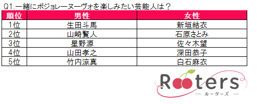 最初の質問として、「一緒にボジョレーヌーヴォを楽しみたい芸能人は?」という質問の1位に輝いたのは、生田斗馬と新垣結衣。どちらも公開間近の映画やドラマの影響で覚めやらぬ人気の様子。