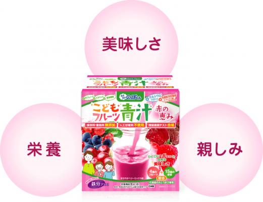 野菜嫌い・偏食などの理由で栄養が偏りがちなお子様のために開発された「こどもフルーツ青汁」。