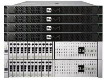 DVX F12X2データノード(すべてフラッシュ)は、常時オンのワイド・イレイジャー・コーディング(2FT)、グローバル重複排除、および圧縮機能により、実効容量は最大83 TBとなっています。最大830 TBまでの単一のDVXに最大10個のフラッシュデータノードをプールできます。DVX CN2100コンピューティングノードはSkylakeプロセッサとNVMeフラッシュドライブでリフレッシュされており、すぐに入手可能です。高いパフォーマンス提供のため、現在すべてのDatriumノードが25 Gb Ethernetオプションをサポートしています。また、ピアキャッシュソフトウェアがDVXソフトウェアに無償で含まれています。