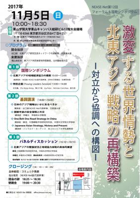 北東アジア研究交流ネットワークは、青山学院大学国際政治経済研究センターの共催のご協力の元で、「激変する世界情勢と北東アジア戦略の再構築 -対立から協調への構図-」をテーマにNEASE-Net第12回フォーラムを開催いたします。