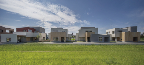 本物件の計画地は三重県北部・川越町の南北を田園に挟まれた東西にのびる分譲地であり、住宅と田園、各々の特徴を損なわずに街並みとしての一体感を生み出すよう「田園をつなぐ分譲住宅」をコンセプトとして分譲計画を展開した。