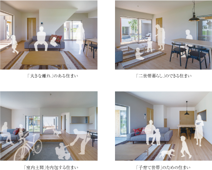 均質化した住まいづくりではなく、従来の建売住宅の範疇を超える「4戸の住まい提案」を設計し、現代の多様な家族像にきめ細かく応えた。