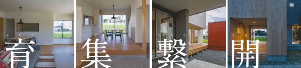 個々の住宅は南北に開口部を大きく確保した「ぬけ」を設けることで田園風景との調和を図り、