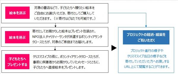 日本出版販売株式会社(代表取締役社長:平林 彰、略称:日販)は、クリスマスイブの夜に、厳しい環境に置かれている子どもたちへ、サンタクロースが絵本を直接プレゼントするプロジェクト「Book Santa 2017」を、本日11月1日(水)より開始しました。